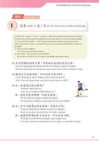1). El uso de 從來 cónglái + 不 bù V expresa la negación absoluta de una acción que el