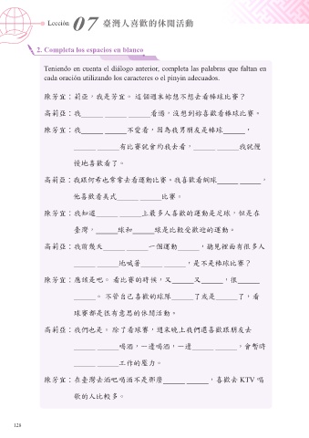 Teniendo en cuenta el diálogo anterior, completa las palabras que faltan en