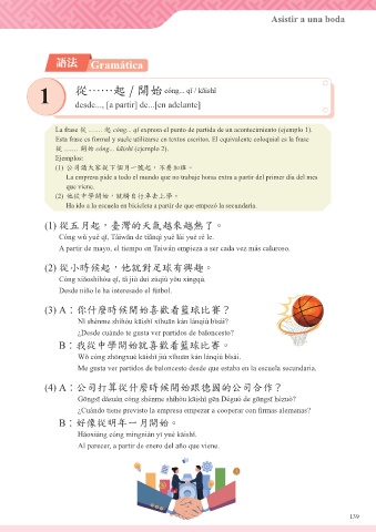 從 …… 開始 cóng... kāishǐ (ejemplo 2).