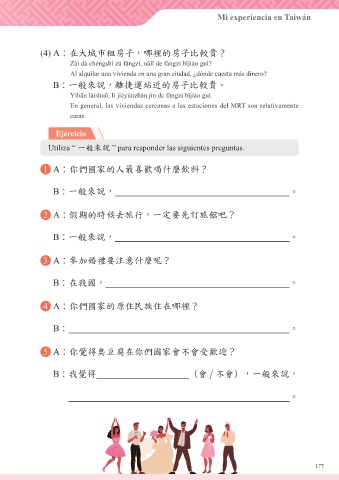 Utiliza “ 一般來說 ” para responder las siguientes preguntas.
