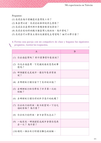 4. Forma una pareja con un compañero de clase y háganse las siguientes
