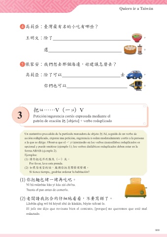 opcional y puede omitirse (ejemplo 1); los verbos disilábicos reduplicados deben estar en la
