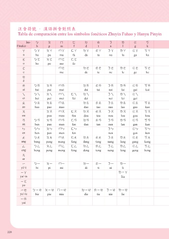 Tabla de comparación entre los símbolos fonéticos Zhuyin Fuhao y Hanyu Pinyin
