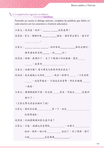 Teniendo en cuenta el diálogo anterior, completa las palabras que faltan en