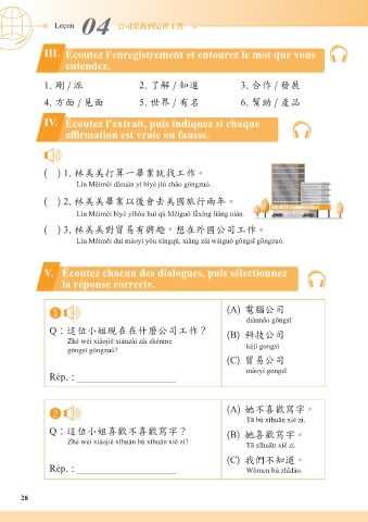V. Écoutez chacun des dialogues, puis sélectionnez
