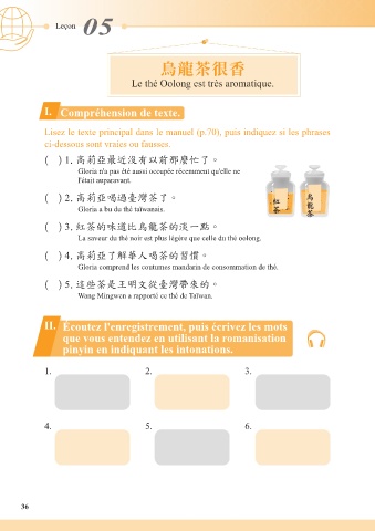 Lisez le texte principal dans le manuel (p.70), puis indiquez si les phrases