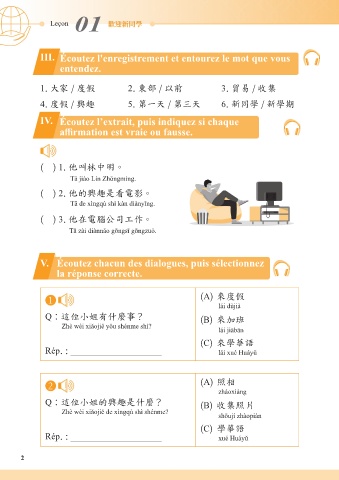 V. Écoutez chacun des dialogues, puis sélectionnez