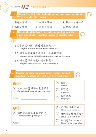 IV. Hören Sie sich den Abschnitt an und geben Sie