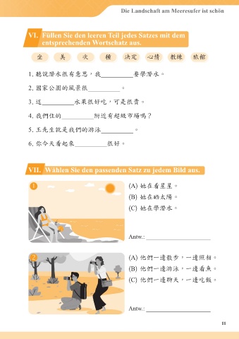 VI. Füllen Sie den leeren Teil jedes Satzes mit dem