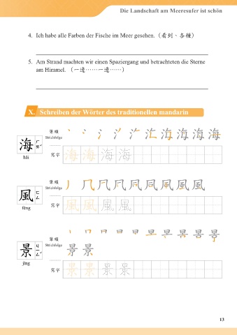 4. Ich habe alle Farben der Fische im Meer gesehen.(看到、各種)