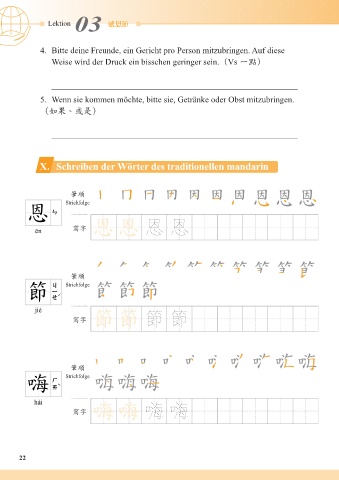 X. Schreiben der Wörter des traditionellen mandarin