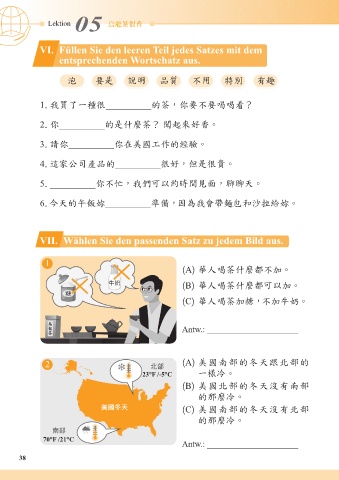 VI. Füllen Sie den leeren Teil jedes Satzes mit dem