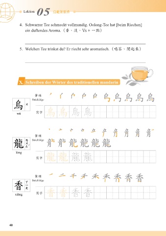 5. Welchen Tee trinkst du? Er riecht sehr aromatisch.(喝茶、聞起來)