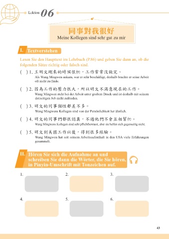 Lesen Sie den Haupttext im Lehrbuch (P.86) und geben Sie dann an, ob die