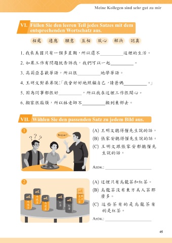 VI. Füllen Sie den leeren Teil jedes Satzes mit dem