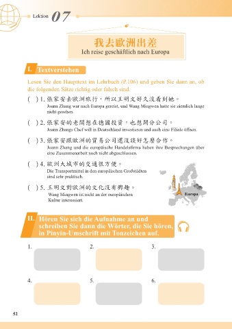 Lesen Sie den Haupttext im Lehrbuch (P.106) und geben Sie dann an, ob