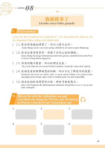 Lesen Sie den Haupttext im Lehrbuch (P. 122) und geben Sie dann an, ob