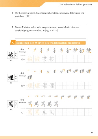 X. Schreiben der Wörter des traditionellen mandarin