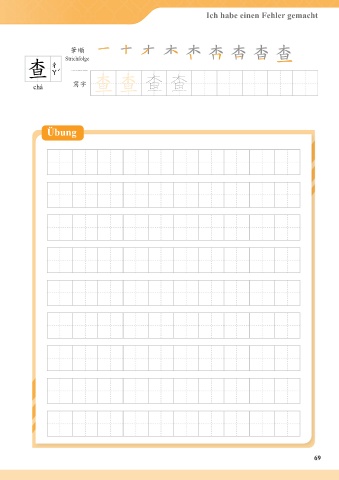 Ich habe einen Fehler gemacht I Made a Mistake 筆順 筆順 stroke order Strichfolge 查 查 查 查 查 查 查 查 寫字 chá 寫字 查查 查 chá Exercise Übung 69 69