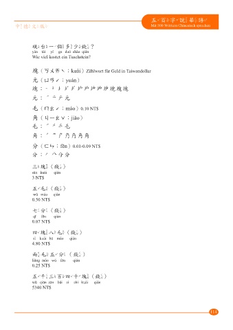 塊(ㄎㄨㄞˋ;kuài)Zählwort für Geld in Taiwandollar