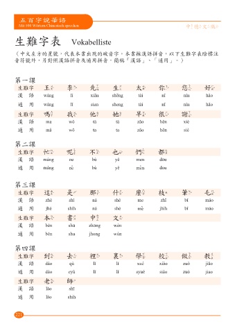 (中文左方的星號,代表本書出現的破音字。本書採漢語拼音,以下生難字表除標注 第五課