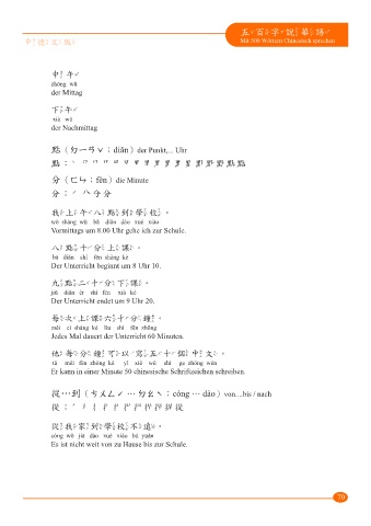 中 午 zhōng wǔ der Mittag 下午 xià wǔ der Nachmittag