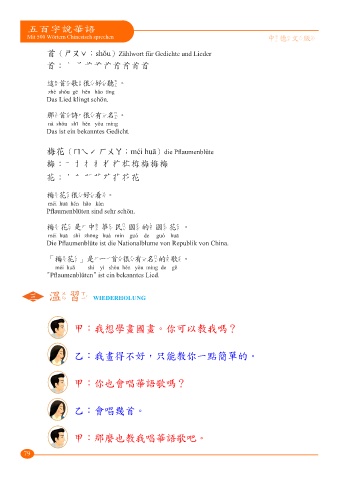 首(ㄕㄡˇ;shǒu)Zählwort für Gedichte und Lieder