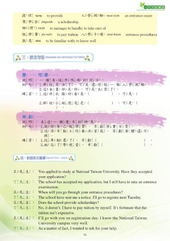 丁先生: The school has accepted my application, but I still have to take an entrance