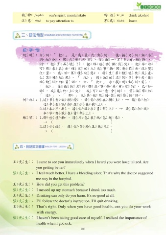 張先生:I feel much better. I have a bleeding ulcer. That's why the doctor suggested