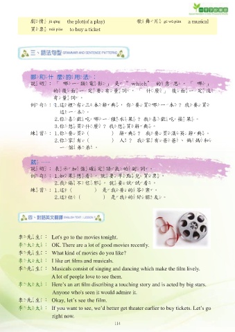 李先生:Musicals consist of singing and dancing which make the fi lm lively.