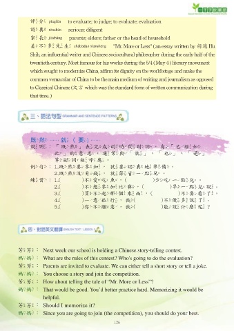 媽媽:That would be good. You’d better practice hard. Memorizing it would be