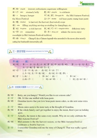 媽媽:Betty, are you hungry? Would you like to eat a moon cake?