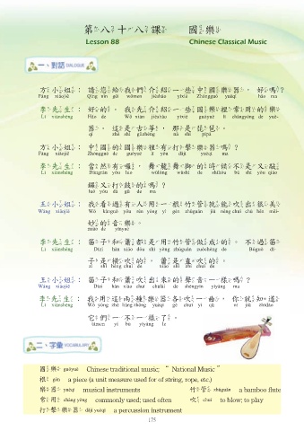樂器 yu8q= musical instruments 竹管 zh/gu3n a bamboo flute