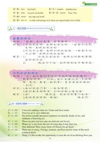 練習:1.( )王先生在泡茶,我們正好跟他學學