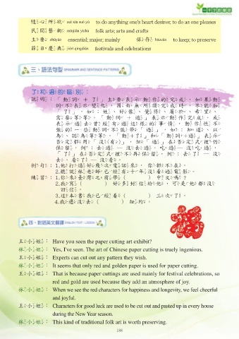 林小姐:Yes, I've seen. The art of Chinese paper cutting is truely ingenious.