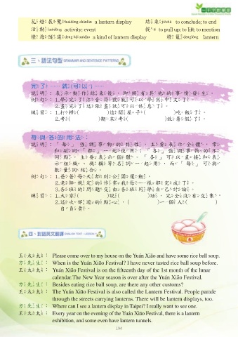 王太太:Yuán Xiāo Festival is on the fi fteenth day of the 1st month of the lunar