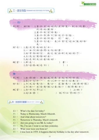 例句:1.今天是幾月、幾日、星期幾?(詢問時間)