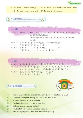王: Did you leave a message for him?