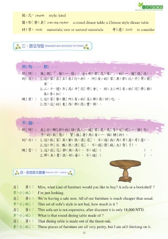 店 員: That dining table is made out of the fi nest oak.