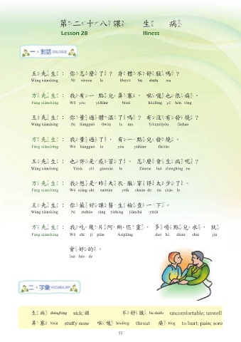 鼻塞 b0s1i stuffy nose 喉嚨 h@ul@ng throat 痛 t$ng to hurt; pain; sore