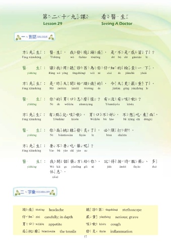 醫 生:你的胃口怎麼樣?有沒有咳嗽?