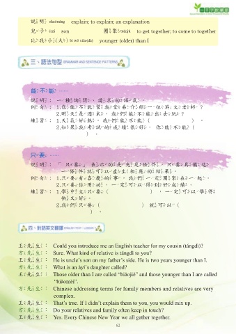 王先生: Could you introduce me an English teacher for my cousin (tángdì)?