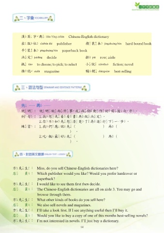 方先生: I’m not interested in novels. I’ll just buy a dictionary.