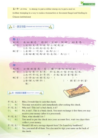 小 姐: No, it isn’t. This is a bank check. You must exchange it fi rst then you may