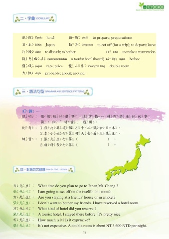 旅館 l{gu3n hotel 預備 y*b8i to prepare; preparations