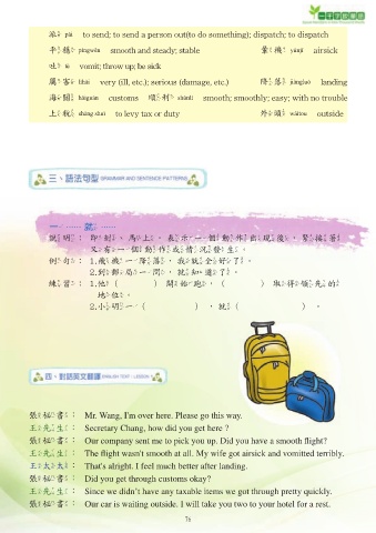 張秘書: Our company sent me to pick you up. Did you have a smooth fl ight?