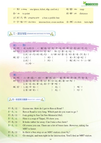 李先生: Go straight, and turn right in the intersection. You'll fi nd an MRT station.