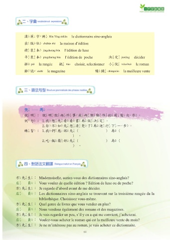 㵑㸃㷓ĈJe ne m’intéresse pas au roman, je vais acheter ce dictionnaire.