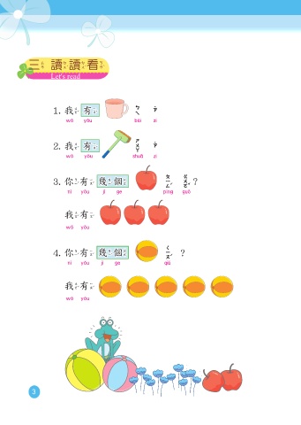 3. 你有 幾個           平  果                               ?                                                            他                                            手指頭