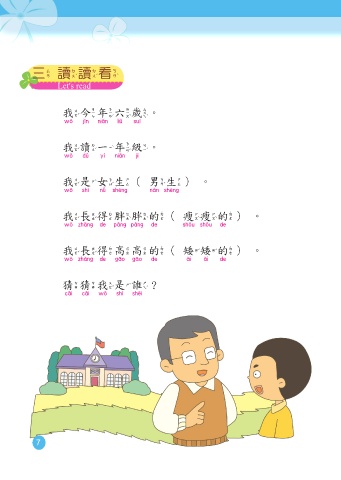 我讀一年級。                                                                                                                 你今年讀一年級。
